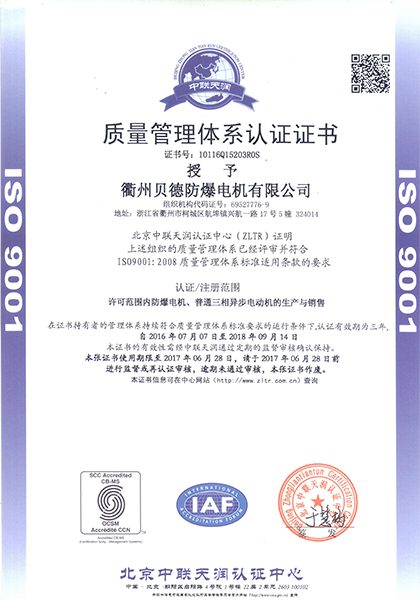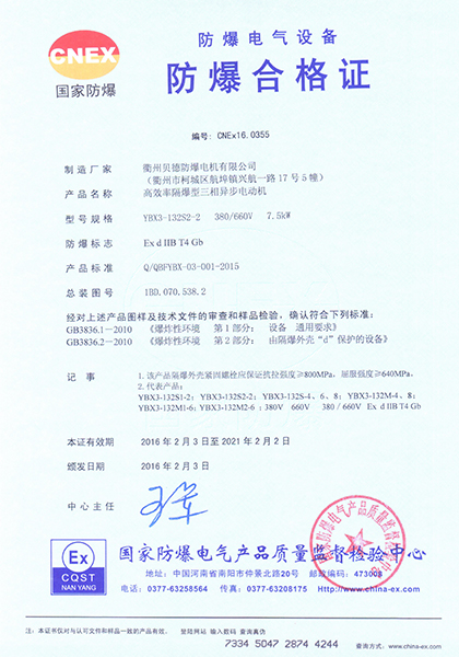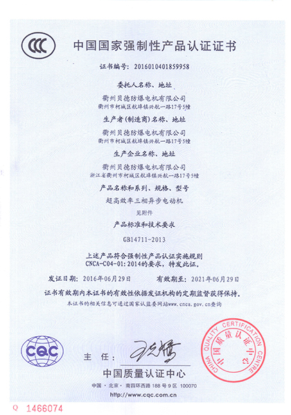 公司率先在行業內取得防爆電氣設備防爆合格證、產品認證證書、中國節能產品認證證書、中國國家強制性產品認證證書以及ISO9001質量管理體系認證證書等。